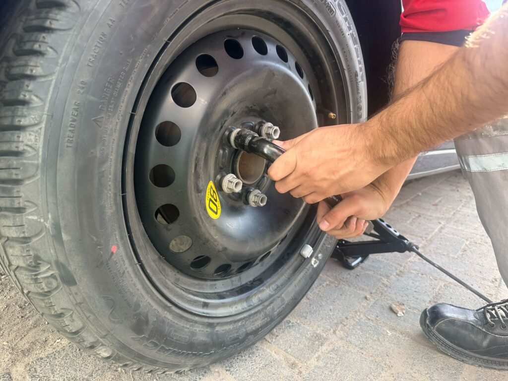 Tyre Change at Home or Roadside – Quick, reliable, and available 24/7.